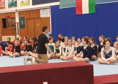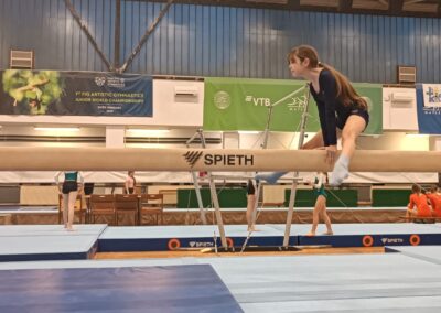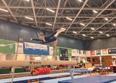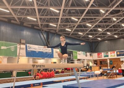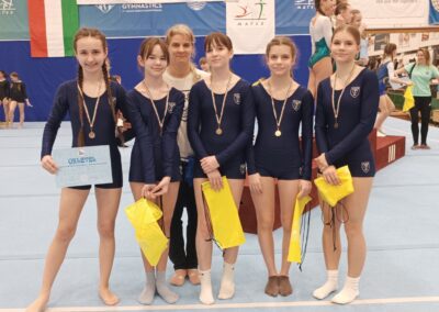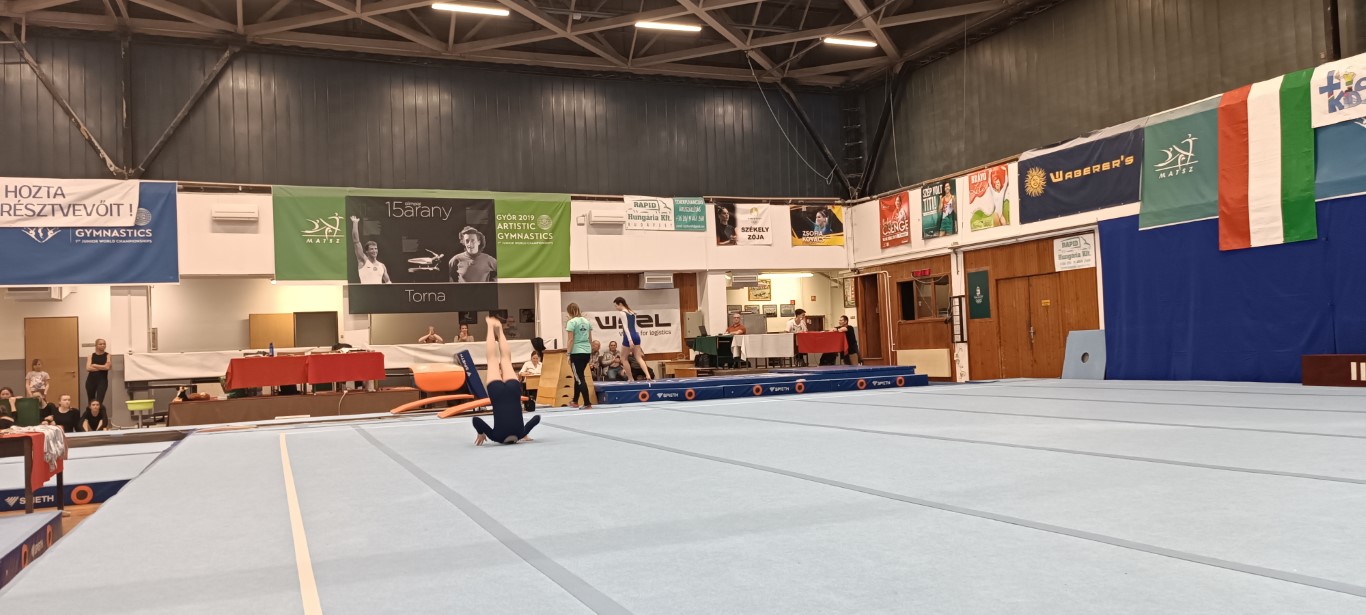 Ez a mezőny a legnépesebb, ezért is 3 fordulóban pihenővel bonyolították le. 3 szeren zajlik a verseny talajgyakorlat zenére, gerenda és szekrényugrás, itt sincsenek bónuszok és szerenkéntit sem hirdetnek, az csak a következő korcsoportnál lesz. Nagyon izgultunk, valakinek még a nagyszülei is kijöttek a versenyre, hogy lássák unokájukat, ami nagyon kedves… Köszönjük! A lányok szépen dolgoztak, több csapatot megelőzve az 5.helyen végeztünk. Persze kicsit csalódottak voltak, hogy nem kerültünk dobogóra, de itt mindig sokkal nehezebb, hiszen itt nagyon sok csapat van.