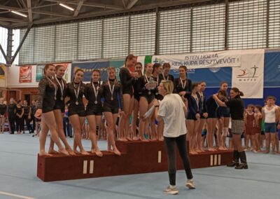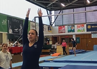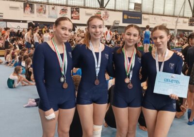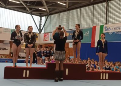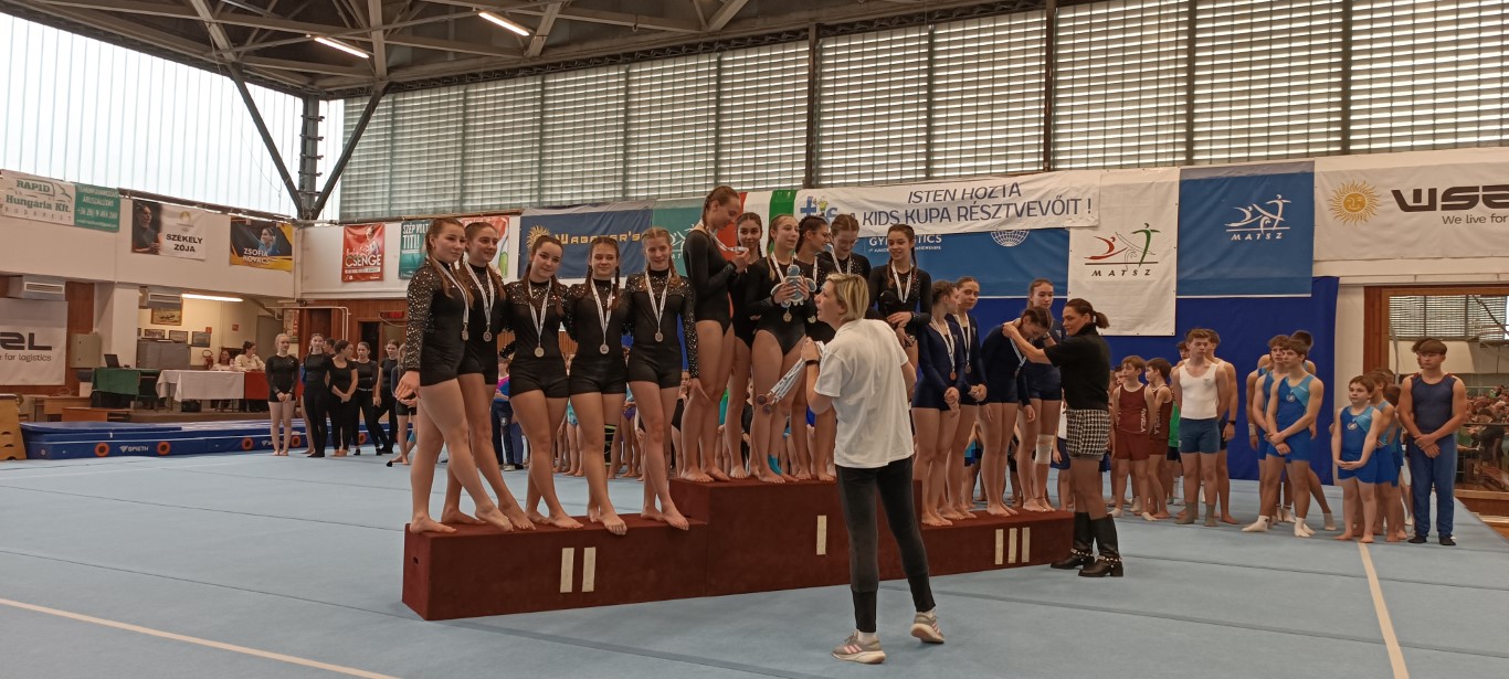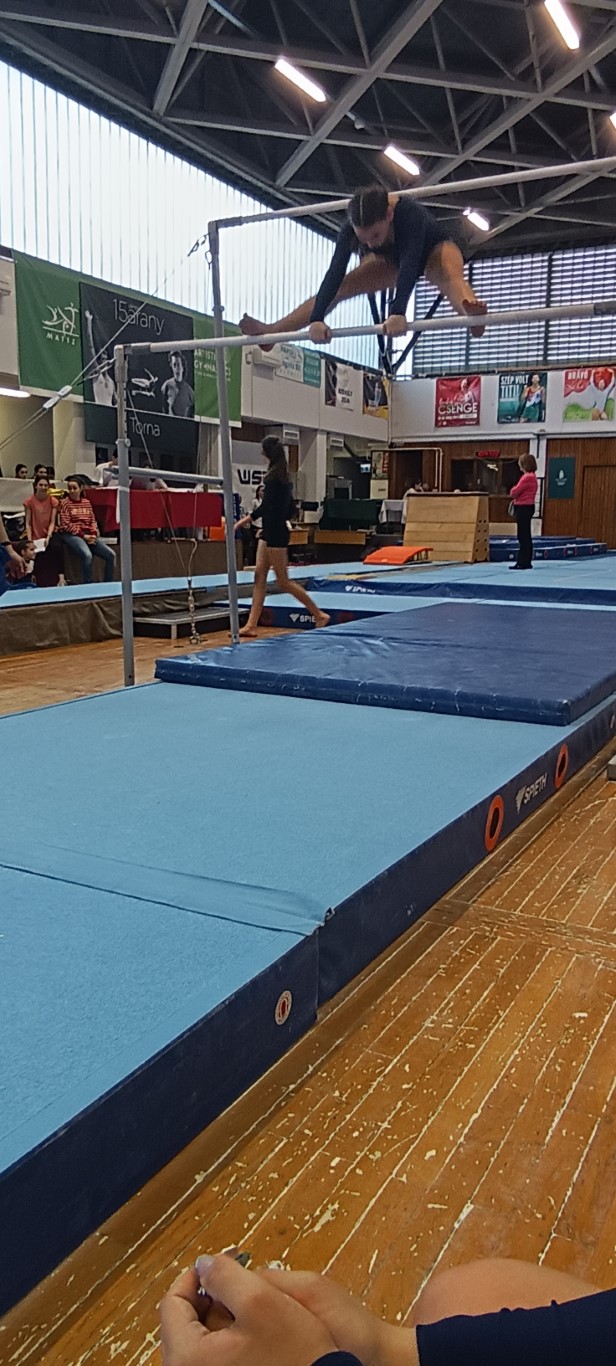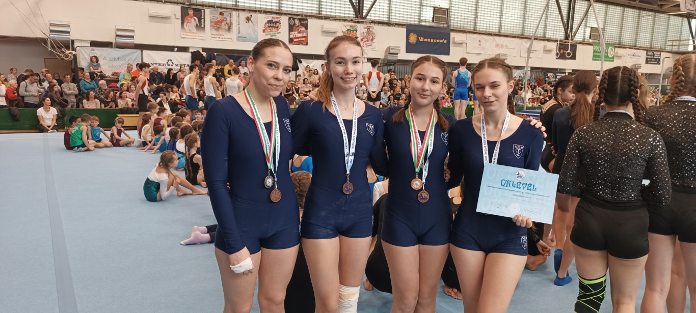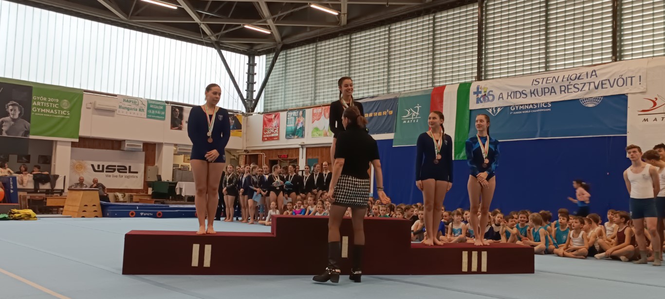 A lányok a Diákolimpia „A” kategóriás előírt versenygyakorlataival indultak ezen a versenyen, és nekik is volt bónusz lehetőség, amit minden szeren ki is használtunk. 4 szeren zajlott a verseny felemáskorlát, talaj, gerenda és szekrényugrás. A lányok ügyesen versenyeztek, volt, akinek ez volt az első szertorna versenye, így nagy örömükre több csapatot is magunk mögé utasítottunk, és csapatunk 3 helyezett lett! Ebben a korcsoportban is van szerenkénti döntő, ahol több érmet is szereztünk, Hajós Kinga ugráson 3.lett, felemáskorláton 3. helyet szerzett, és Bódis Kinga felemáskorláton 2.lett! Nagyon ügyesek vagytok lányok!