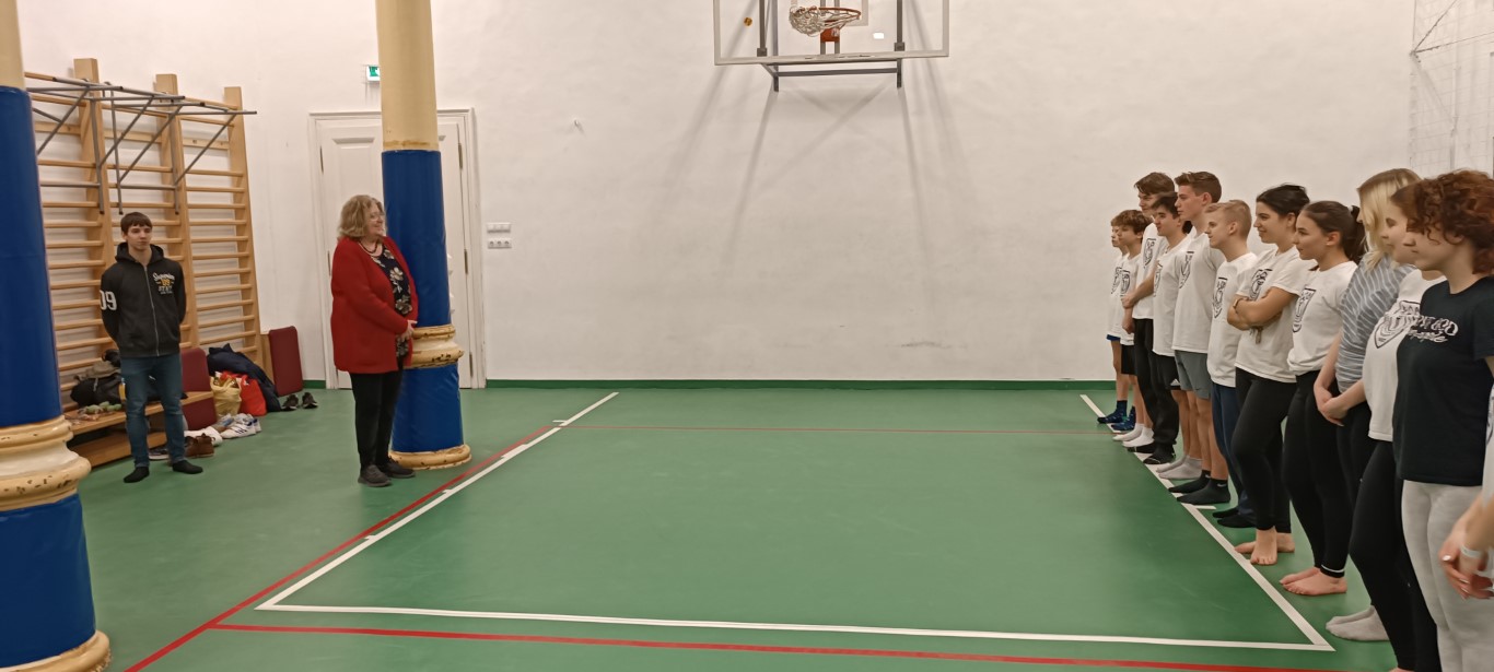 Igazgató Asszonyunk megnyitotta a versenyt, ahol 6 fiú és 7 lány vett részt, tehát 2 csapatnyi tanuló 7.-12. évfolyamig.