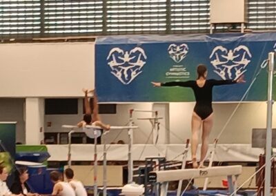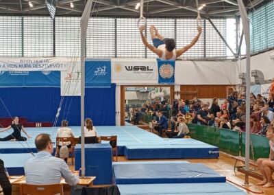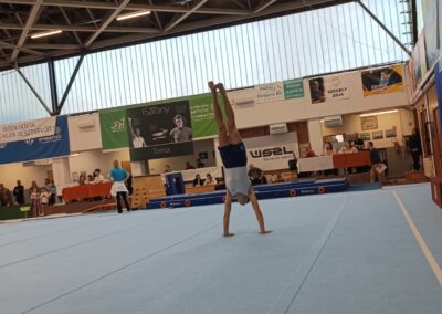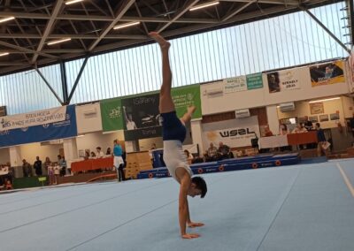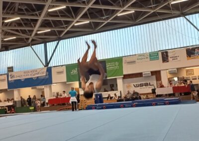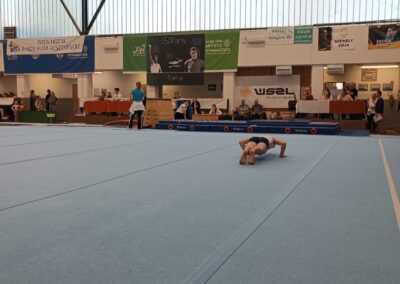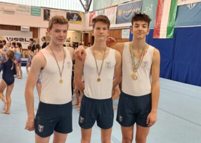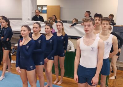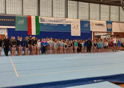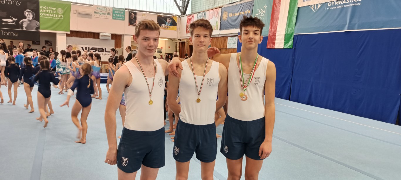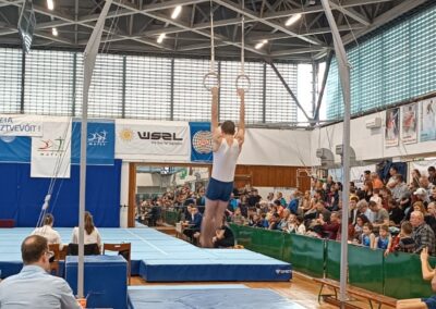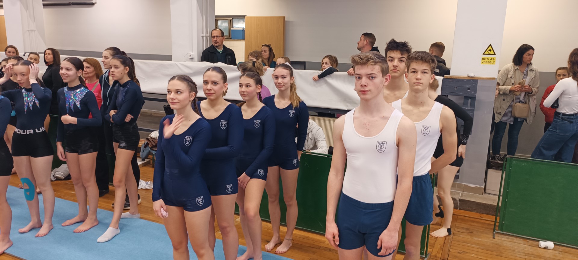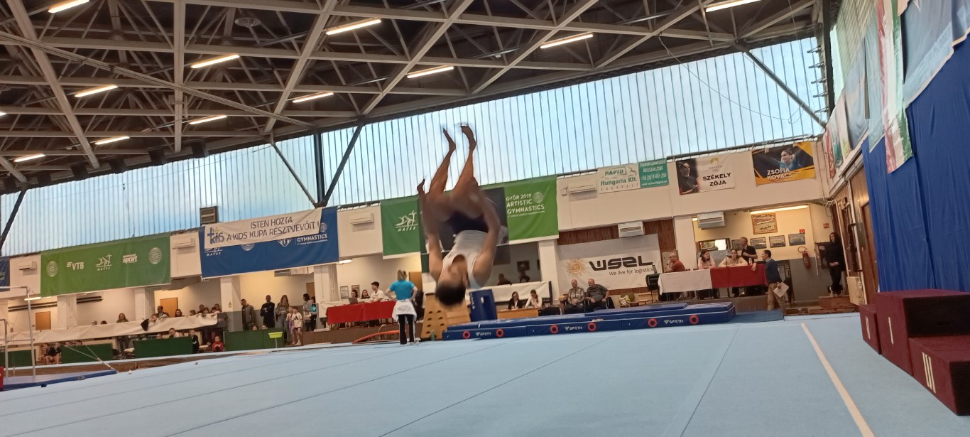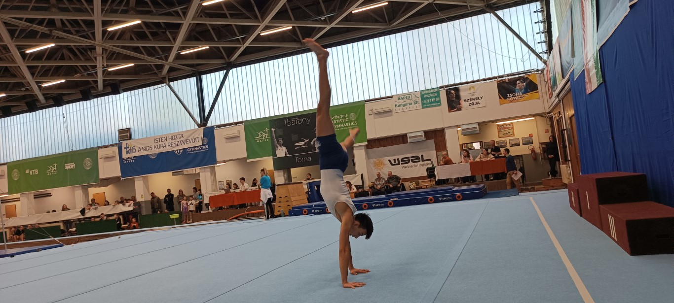 A versenyt a Torna Csarnokban rendezték, ahol van lehetőség nézőknek is megtekinteni gyermekeiket is. A nagyobbaknál ez kevésbé, kisebbeknél nagyon fontos mind a gyermek, mind a szülő részéről. Nálunk is kevés néző volt, de legalább kevésbé izgultak fiaink. 4 szeres a verseny talaj, gyűrű, szekrényugrás és korlát gyakorlatokat kell bemutatni. Ebben a korcsoportban bónusz lehetőség is van, alapgyakorlat mellett 1 vagy 2 nehezebb előírt elemet be lehet építeni a gyakorlatba. Fiaink nagyon ügyesen versenyeztek, csapatban 1. helyen végeztek, sőt szerenként bajnokságon ugráson Boti 3. helyezett lett, így 2 éremmel térhetett haza.