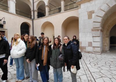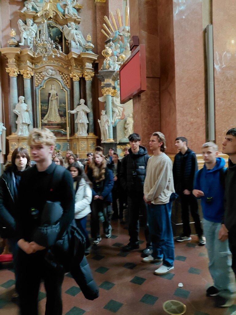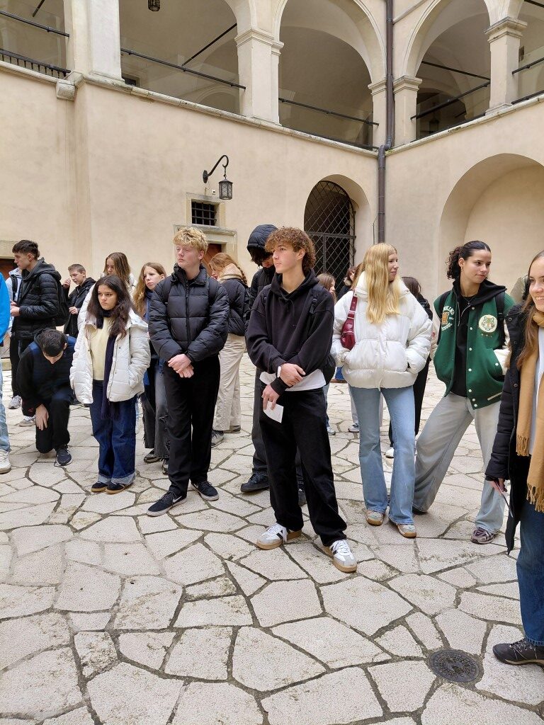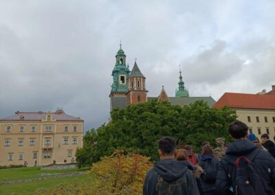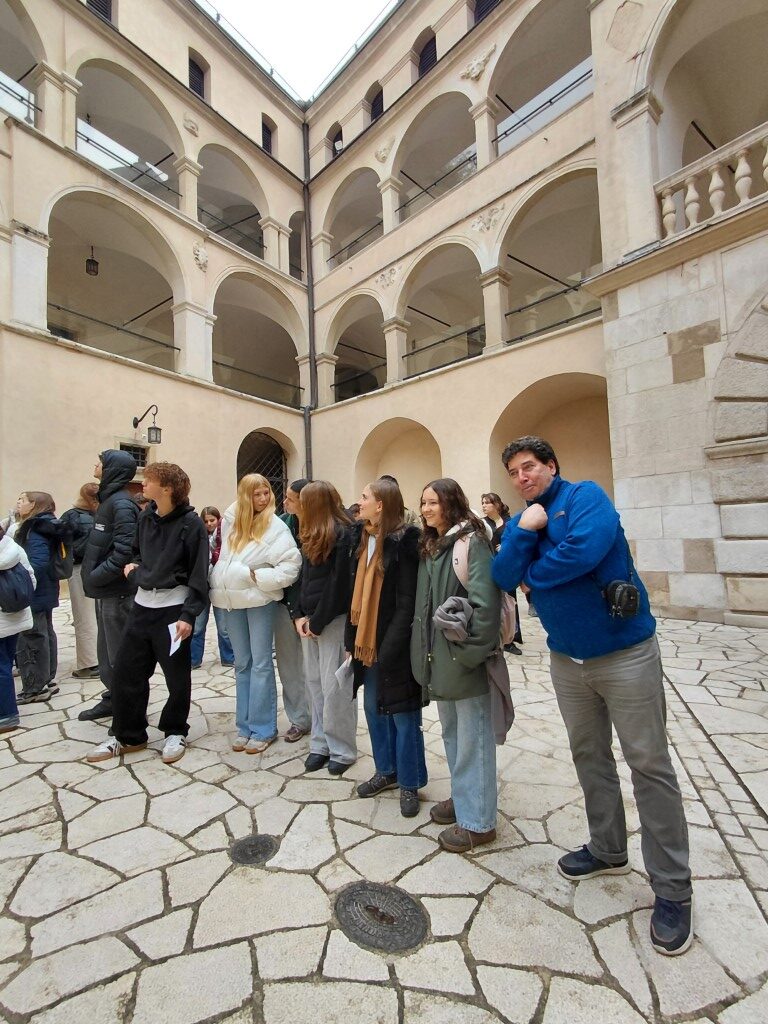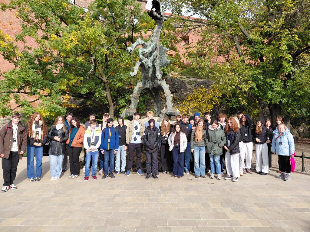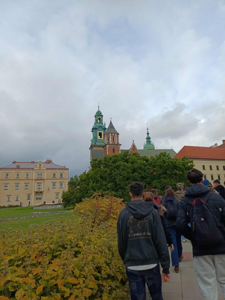 Hétfőn kora reggel indultunk el, tele izgalommal és kíváncsisággal. Az út Szlovákián keresztül vezetett, így már az első napon több országon is áthaladtunk. Első állomásunk Krakkó volt, ahol megtekinthettük a híres waweli sárkányszobrot, magát a Wawelt – azaz a krakkói királyi várat, amely századokon keresztül jelentette Lengyelország központját – és a Mária-templomot. Este 19 óra körül érkeztünk meg vendéglátóinkhoz, akik finom vacsorával fogadtak bennünket.