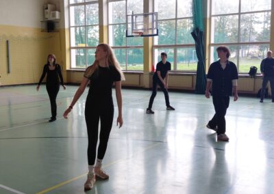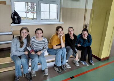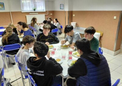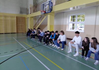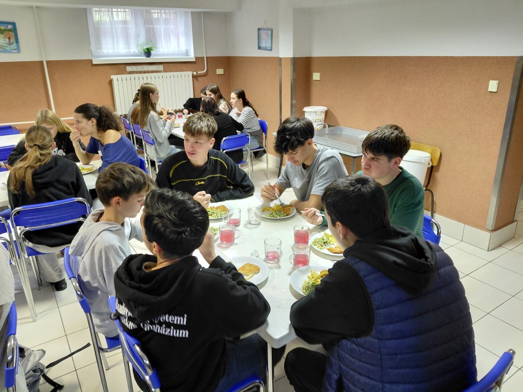 Csütörtökön betekintést nyerhettünk a lengyel diákok mindennapjaiba. Lehetőségünk volt részt venni egy testnevelésórán, ahol közösen focizhattunk és röplabdázhattunk velük. Kipróbálhattuk a lézerlövészetet is, mivel az iskolájukban a miénkhez hasonlóan működik kadétprogram. Remek alkalom volt ez arra is, hogy a buszút során megtanult lengyel kifejezésket gyakoroljuk.