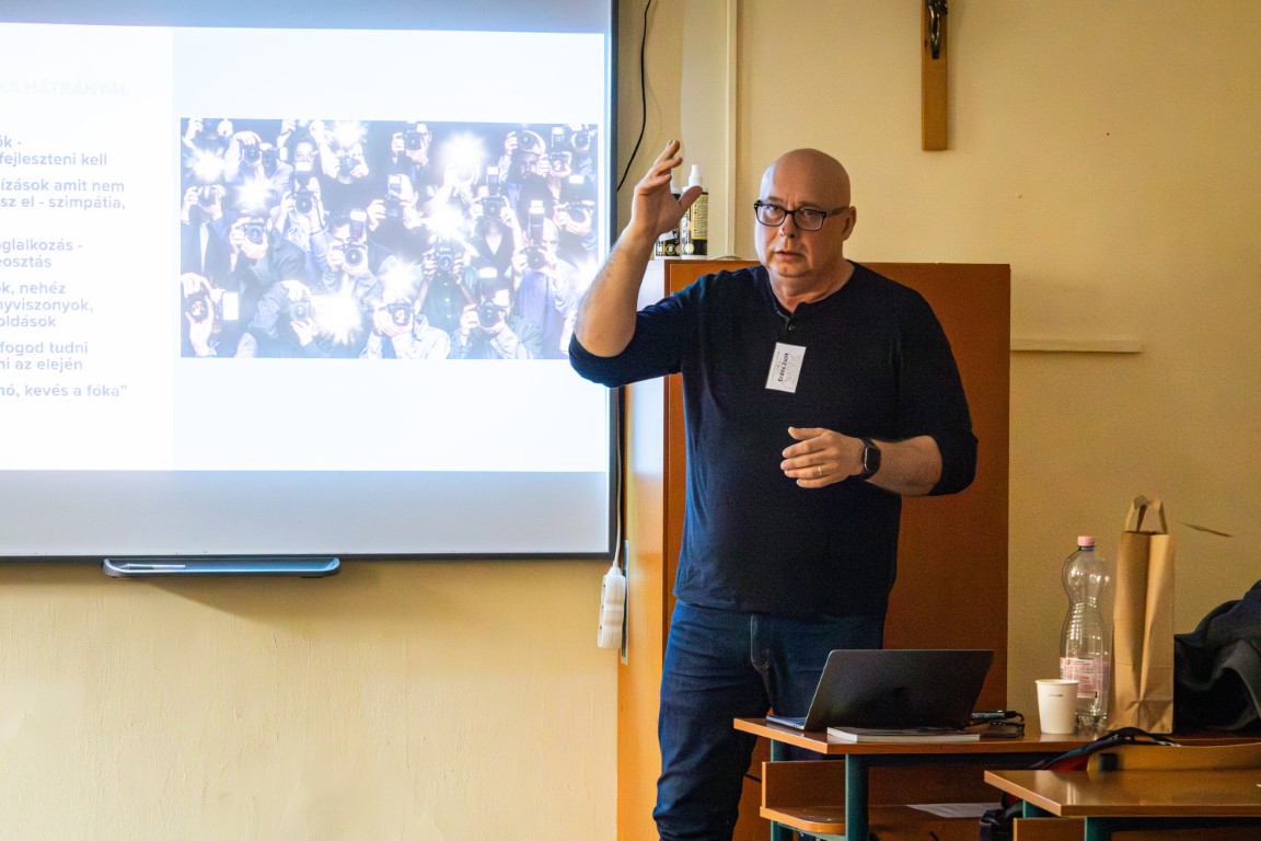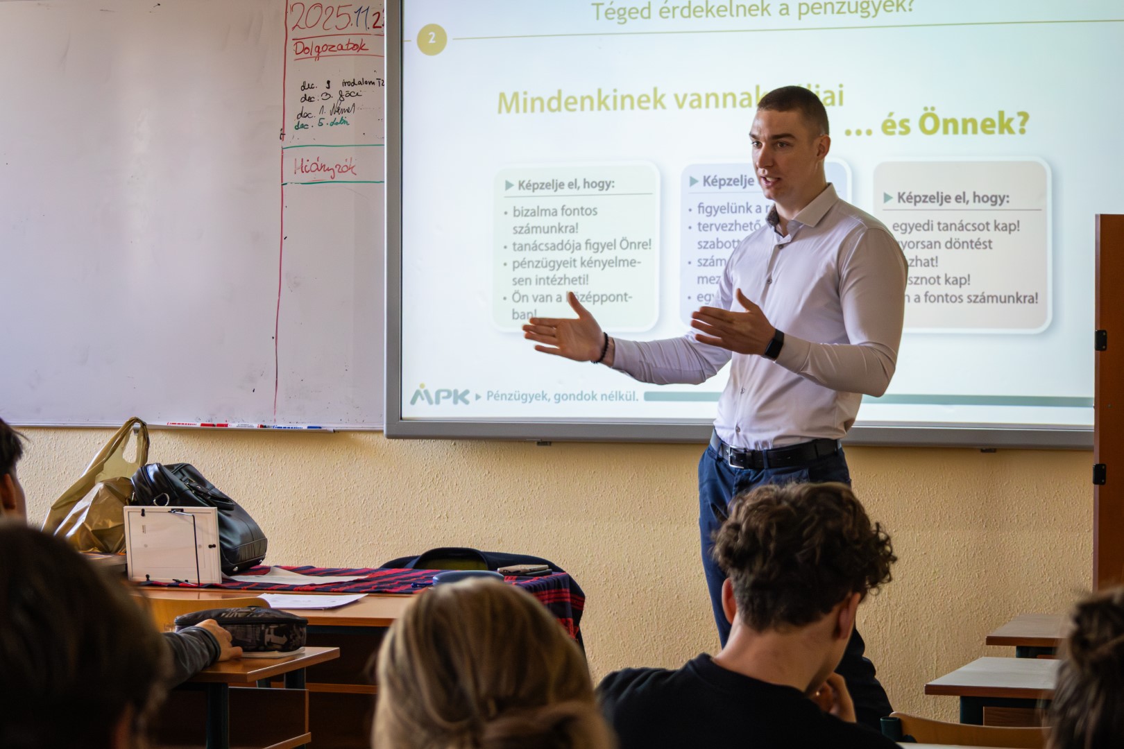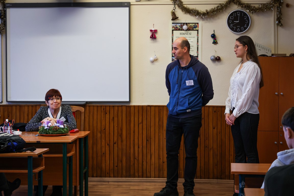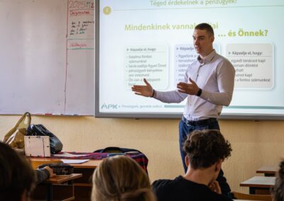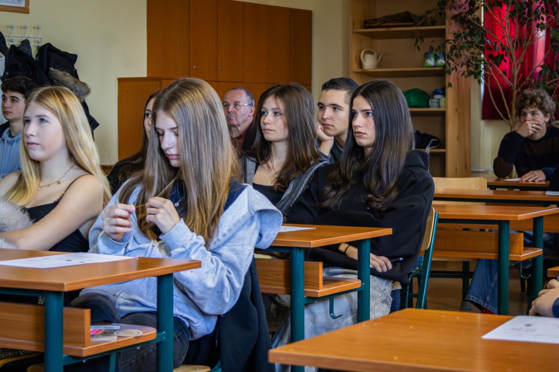 Érdekel a fényképészet, gondolkozol a jogi pályán? A november 28-i pályaorientációs nappal ezeket a foglalkozásokat jobban megismerhették a diákok, hiszen betekintést nyerhettek az érdekesebbnél érdekesebb mesterségek, hivatások kulisszái mögé. Találkozhattak például e-sportolóval, operatőrrel, állatorvossal és pilótával is, akik meséltek a mindennapi életükről, munkájukkal szerzett tapasztalatokról és az azzal járó kihívásokról is. A nap végére a diákok talán egy lépéssel közelebb kerültek a jövőjük megtalálásához is, de az biztos, hogy szélesebb lett a látókörük. (Címlapfotó: gimnáziumunk 2016-ban érettségizett diákja, Munkácsi Balázs immár közgazdászként tart előadást a mindennapok pénzügyeiről. A fotókat Bánházi Bulcsú, Hábel Dániel és Pálincser Gabriella készítette.)