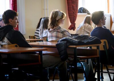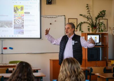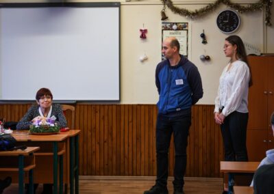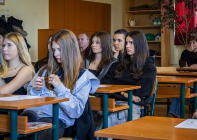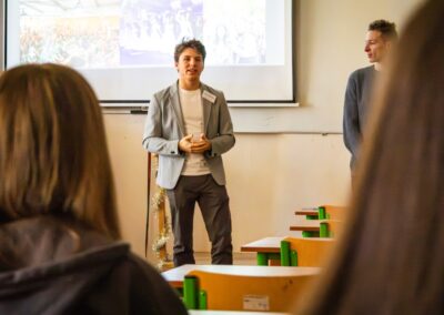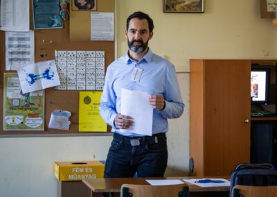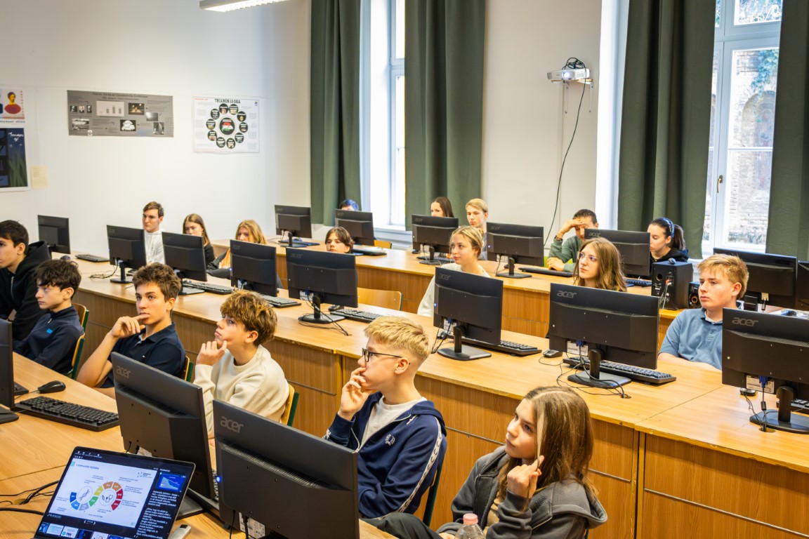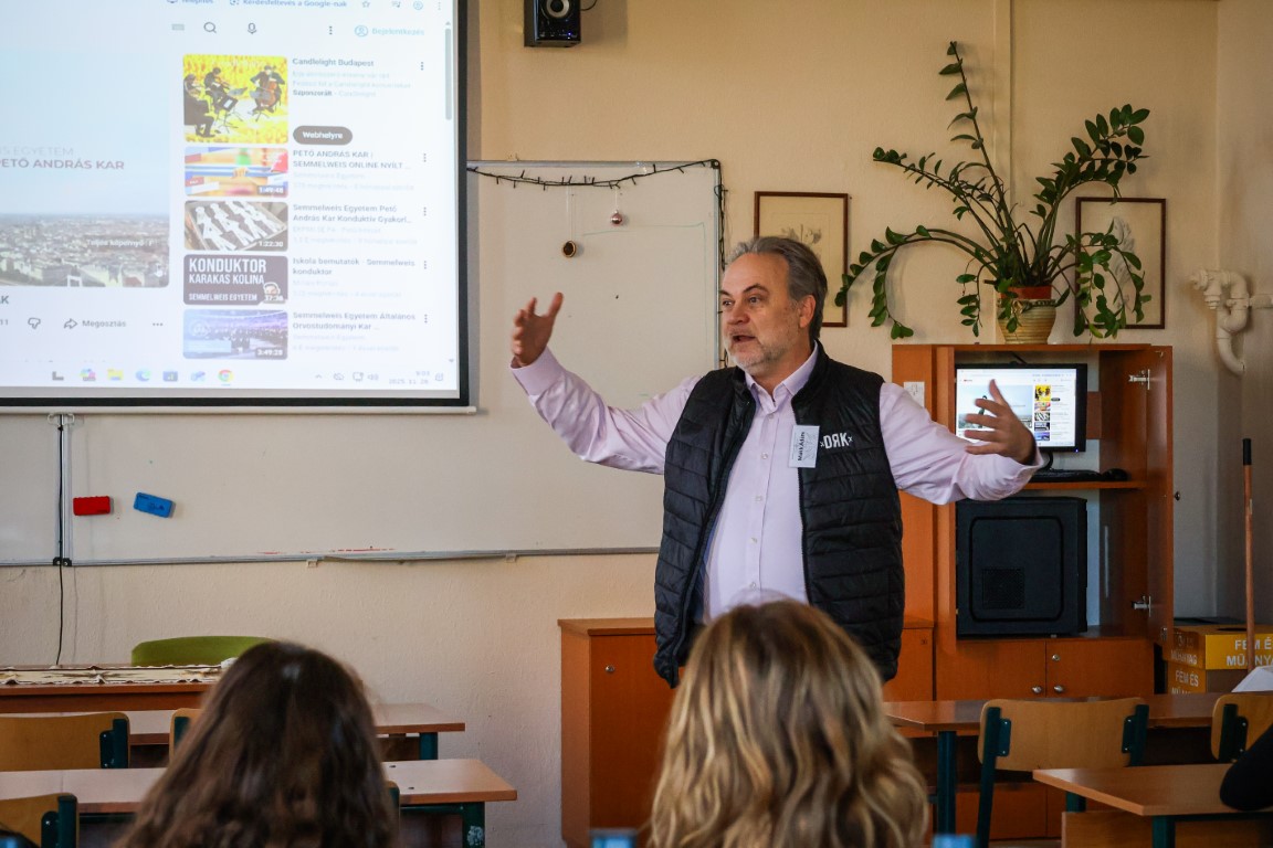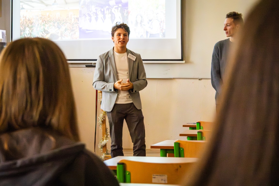 Érdekel a fényképészet, gondolkozol a jogi pályán? A november 28-i pályaorientációs nappal ezeket a foglalkozásokat jobban megismerhették a diákok, hiszen betekintést nyerhettek az érdekesebbnél érdekesebb mesterségek, hivatások kulisszái mögé. Találkozhattak például e-sportolóval, operatőrrel, állatorvossal és pilótával is, akik meséltek a mindennapi életükről, munkájukkal szerzett tapasztalatokról és az azzal járó kihívásokról is. A nap végére a diákok talán egy lépéssel közelebb kerültek a jövőjük megtalálásához is, de az biztos, hogy szélesebb lett a látókörük. (Címlapfotó: gimnáziumunk 2016-ban érettségizett diákja, Munkácsi Balázs immár közgazdászként tart előadást a mindennapok pénzügyeiről. A fotókat Bánházi Bulcsú, Hábel Dániel és Pálincser Gabriella készítette.)